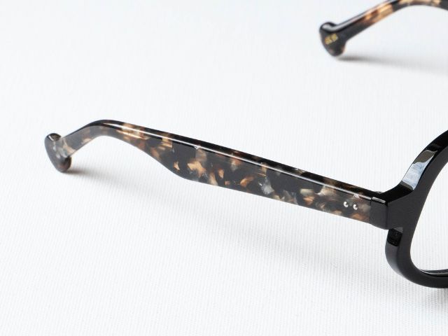 一方で脇を彩るテンプルには柄生地を採用。