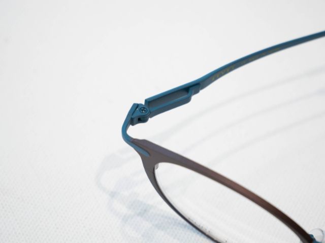 テンプルにはバネ丁番を採用しており、こめかみの圧迫を抑えながらフィットさせやすく、掛け外しの多い生活でもストレスが出にくいのがポイントです。