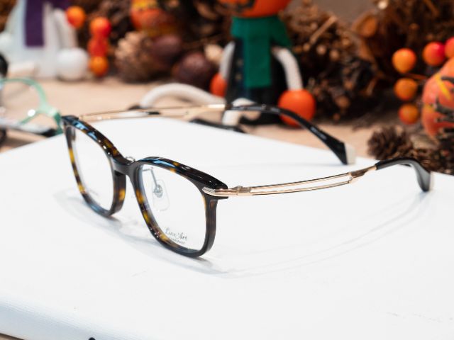 深みのあるべっ甲柄(デミ柄)のフロントが、掛ける方の表情に落ち着きと上質感を添えます。