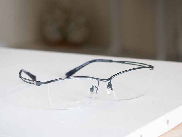 シャープな印象のスクエア型ハーフリム(ナイロール)を採用したこのフレーム。