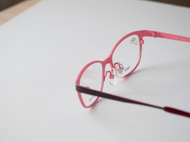 一方で、フレームの裏側やテンプルの一部には、優しくも鮮やかなピンクが隠されています。