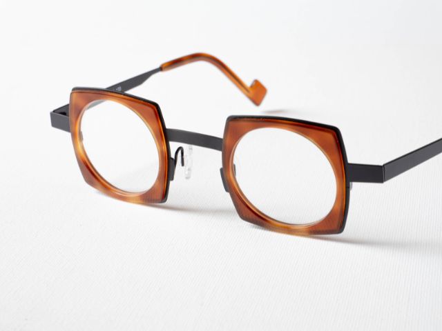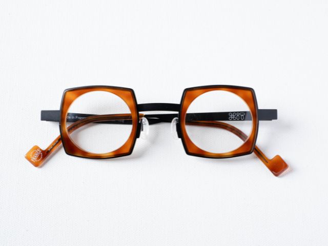 温かみのあるブラウンのアセテート生地と、クールなマットブラックのメタルテンプルを組み合わせることで、高級感と現代的な軽やかさを両立させています。