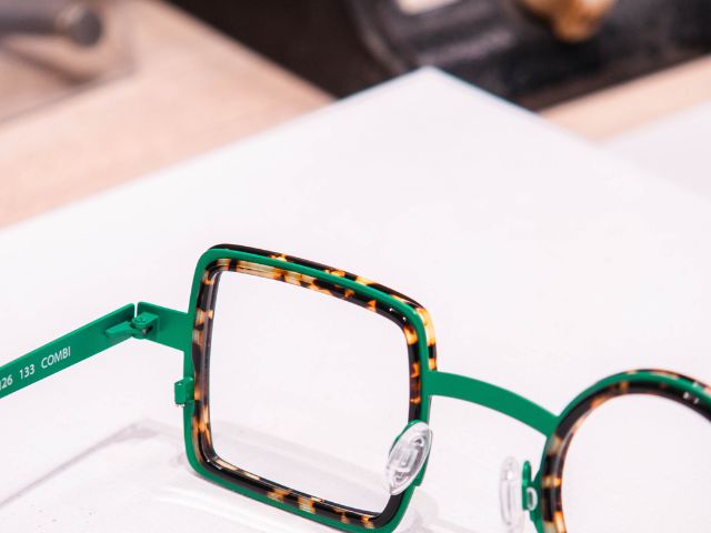 べっ甲柄のフロントと組み合わさることで、色の存在感が分散し、顔なじみがよく感じられます。