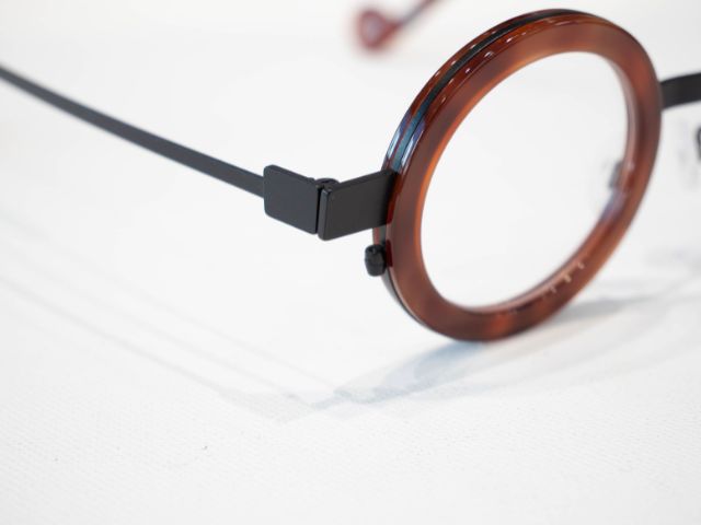 艶のあるブラウンのリムは、程よい厚みで目元をやさしく包みます。